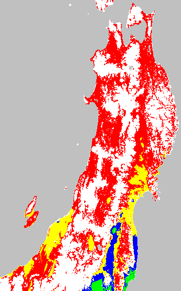 安全作期の策定にある気温指標のうち、乾田直播の安全早限日の気温指標13.5℃を用いて表示しています。13.5℃以下については1℃刻みで表示し、可能域がどのように推移するかをみるものです。