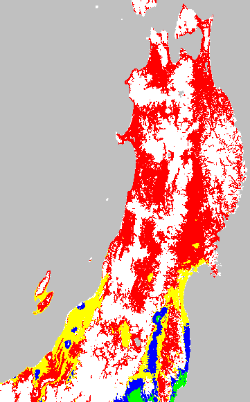安全作期の策定にある気温指標のうち、中苗・成苗移植の安全早限日の気温指標13.0℃を用いて表示しています。13.0℃以下については1℃刻みで表示し、可能域がどのように推移するかをみるものです。