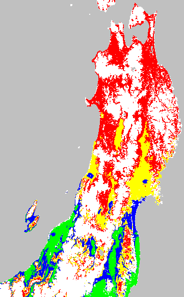 安全作期の策定にある気温指標のうち、稚苗移植の安全早限日の気温指標12.0℃を用いて表示しています。12.0℃以下については1℃刻みで表示し、可能域がどのように推移するかをみるものです。