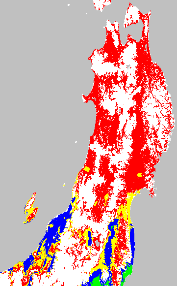 安全作期の策定にある気温指標のうち、中苗・成苗移植の安全早限日の気温指標13.0℃を用いて表示しています。13.0℃以下については1℃刻みで表示し、可能域がどのように推移するかをみるものです。