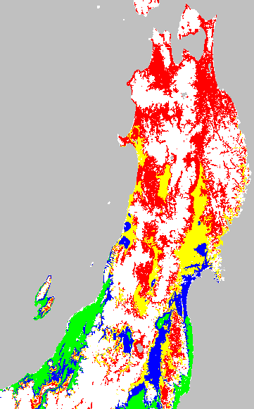 安全作期の策定にある気温指標のうち、稚苗移植の安全早限日の気温指標12.0℃を用いて表示しています。12.0℃以下については1℃刻みで表示し、可能域がどのように推移するかをみるものです。