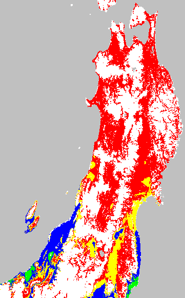 安全作期の策定にある気温指標のうち、中苗・成苗移植の安全早限日の気温指標13.0℃を用いて表示しています。13.0℃以下については1℃刻みで表示し、可能域がどのように推移するかをみるものです。