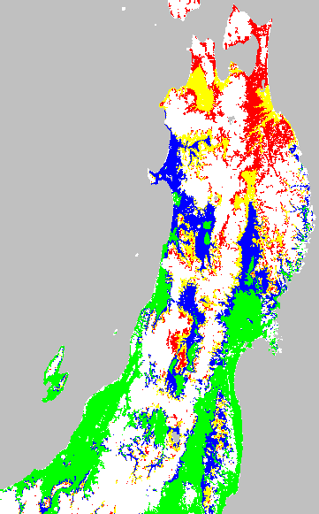 安全作期の策定にある気温指標のうち、夏作物の生育可能な気温指標10℃を用いて表示しています。10℃以下については1℃刻みで表示し、可能域がどのように推移するかをみるものです。