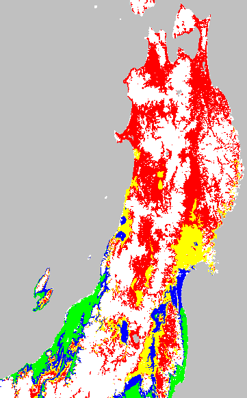 安全作期の策定にある気温指標のうち、稚苗移植の安全早限日の気温指標12.0℃を用いて表示しています。12.0℃以下については1℃刻みで表示し、可能域がどのように推移するかをみるものです。