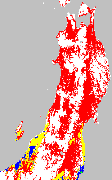 安全作期の策定にある気温指標のうち、乾田直播の安全早限日の気温指標13.5℃を用いて表示しています。13.5℃以下については1℃刻みで表示し、可能域がどのように推移するかをみるものです。