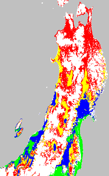 安全作期の策定にある気温指標のうち、夏作物の生育可能な気温指標10℃を用いて表示しています。10℃以下については1℃刻みで表示し、可能域がどのように推移するかをみるものです。