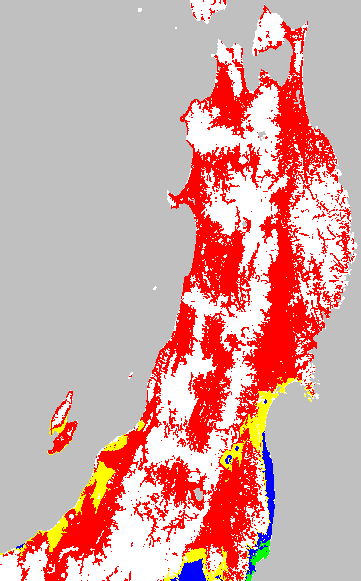 安全作期の策定にある気温指標のうち、稚苗移植の安全早限日の気温指標12.0℃を用いて表示しています。12.0℃以下については1℃刻みで表示し、可能域がどのように推移するかをみるものです。