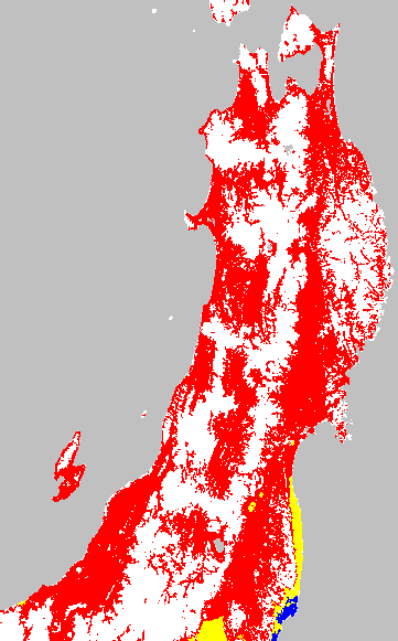 安全作期の策定にある気温指標のうち、中苗・成苗移植の安全早限日の気温指標13.0℃を用いて表示しています。13.0℃以下については1℃刻みで表示し、可能域がどのように推移するかをみるものです。