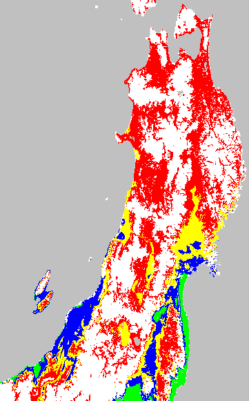 安全作期の策定にある気温指標のうち、夏作物の生育可能な気温指標10℃を用いて表示しています。10℃以下については1℃刻みで表示し、可能域がどのように推移するかをみるものです。