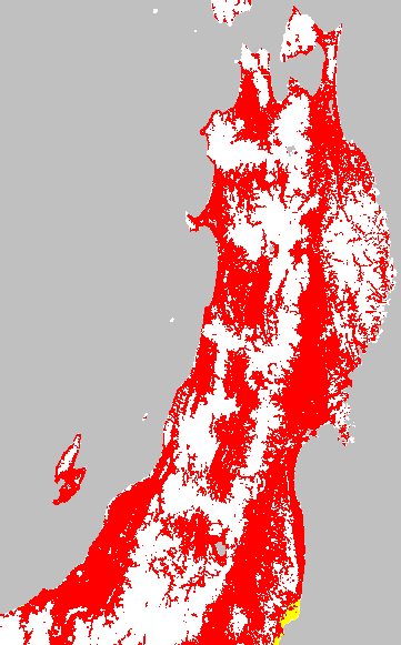 安全作期の策定にある気温指標のうち、中苗・成苗移植の安全早限日の気温指標13.0℃を用いて表示しています。13.0℃以下については1℃刻みで表示し、可能域がどのように推移するかをみるものです。