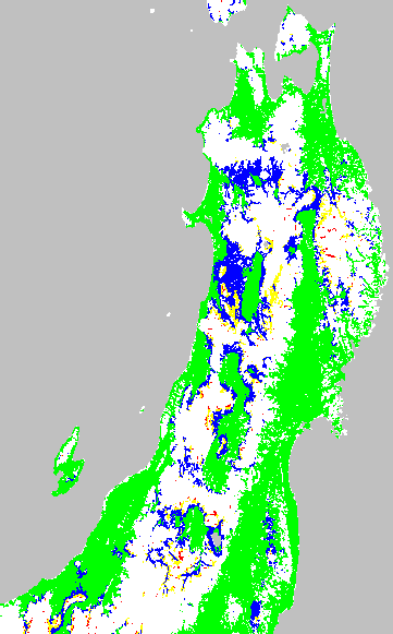 安全作期の策定にある気温指標のうち、夏作物の生育可能な気温指標10℃を用いて表示しています。10℃以下については1℃刻みで表示し、可能域がどのように推移するかをみるものです。