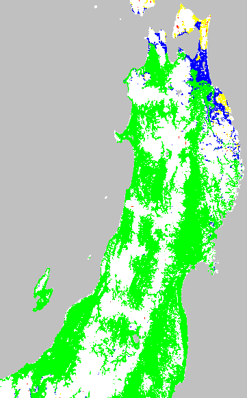 安全作期の策定にある気温指標のうち、乾田直播の安全早限日の気温指標13.5℃を用いて表示しています。13.5℃以下については1℃刻みで表示し、可能域がどのように推移するかをみるものです。