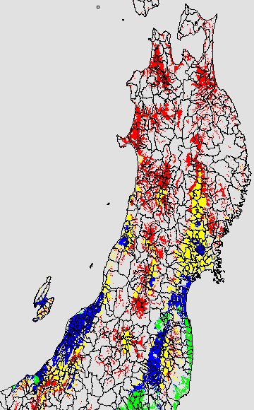 各種文献などを参考にして、草丈・根の伸長に関する限界温度を平均気温で13℃と設定し、13℃以上については1℃刻みで表示します。過去7日の移動平均値で示す。草丈や根の伸長が遅延すると予想される地域を監視するものです。