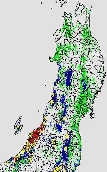 安全作期の策定にある気温指標のうち、いもち病蔓延可能日の平均気温指標20.0℃を用いて表示し、20.0℃未満については1℃刻みで表示します。過去7日の移動平均値で示しています。いもち病の蔓延可能域を監視するものです。葉いもち発生予察メッシュと併せてご覧ください。