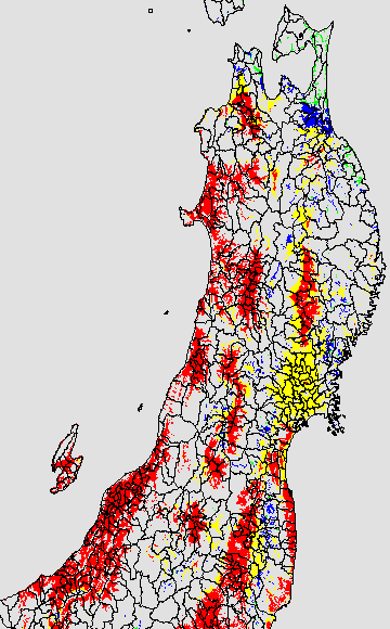 安全作期の策定にある気温指標のうち、いもち病蔓延可能日の平均気温指標20.0℃を用いて表示し、20.0℃未満については1℃刻みで表示します。過去7日の移動平均値で示しています。いもち病の蔓延可能域を監視するものです。葉いもち発生予察メッシュと併せてご覧ください。