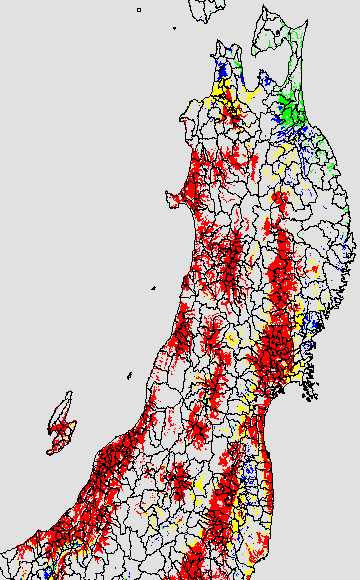 葉いもち蔓延可能域