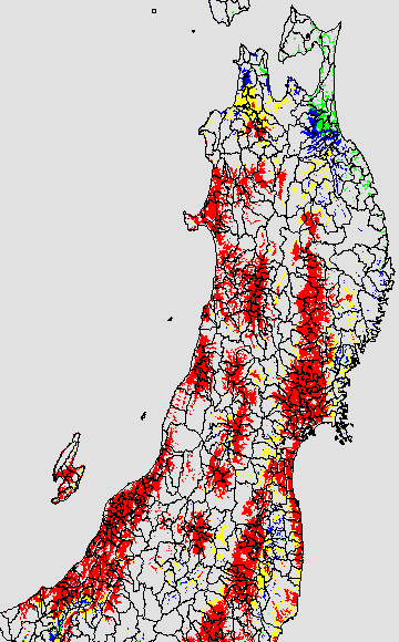 安全作期の策定にある気温指標のうち、いもち病蔓延可能日の平均気温指標20.0℃を用いて表示し、20.0℃未満については1℃刻みで表示します。過去7日の移動平均値で示しています。いもち病の蔓延可能域を監視するものです。葉いもち発生予察メッシュと併せてご覧ください。