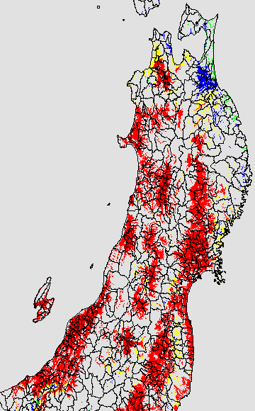 葉いもち蔓延可能域