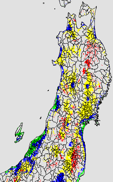 登熟停止が懸念される最低気温として、八柳(1960)は10℃を設定している。それを基に、極端な低温が来た地域の移り変わりを、最低気温の前3日の移動平均値で図示する。
