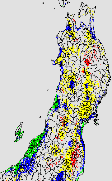 登熟停止が懸念される最低気温として、八柳(1960)は10℃を設定している。それを基に、極端な低温が来た地域の移り変わりを、最低気温の前3日の移動平均値で図示する。