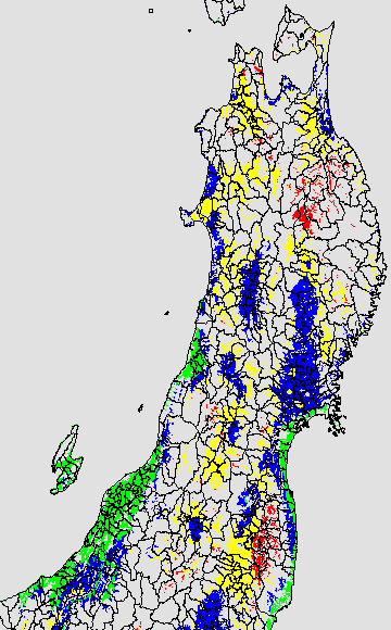 登熟停止が懸念される最低気温として、八柳(1960)は10℃を設定している。それを基に、極端な低温が来た地域の移り変わりを、最低気温の前3日の移動平均値で図示する。