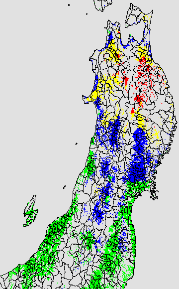 登熟停止が懸念される最低気温として、八柳(1960)は10℃を設定している。それを基に、極端な低温が来た地域の移り変わりを、最低気温の前3日の移動平均値で図示する。