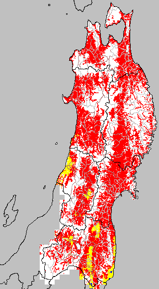 安全作期の策定にある気温指標のうち、夏作物の生育可能な気温指標10℃を用いて表示しています。10℃以下については1℃刻みで表示し、可能域がどのように推移するかをみるものです。
