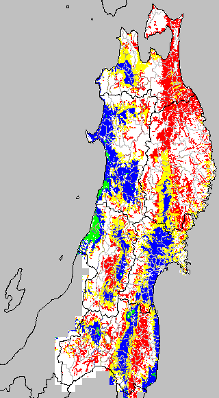 安全作期の策定にある気温指標のうち、夏作物の生育可能な気温指標10℃を用いて表示しています。10℃以下については1℃刻みで表示し、可能域がどのように推移するかをみるものです。