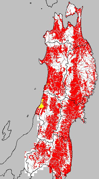 安全作期の策定にある気温指標のうち、中苗・成苗移植の安全早限日の気温指標13.0℃を用いて表示しています。13.0℃以下については1℃刻みで表示し、可能域がどのように推移するかをみるものです。