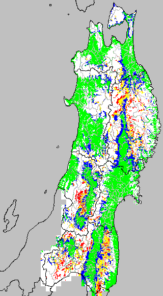 安全作期の策定にある気温指標のうち、夏作物の生育可能な気温指標10℃を用いて表示しています。10℃以下については1℃刻みで表示し、可能域がどのように推移するかをみるものです。