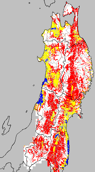 安全作期の策定にある気温指標のうち、中苗・成苗移植の安全早限日の気温指標13.0℃を用いて表示しています。13.0℃以下については1℃刻みで表示し、可能域がどのように推移するかをみるものです。