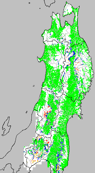 安全作期の策定にある気温指標のうち、夏作物の生育可能な気温指標10℃を用いて表示しています。10℃以下については1℃刻みで表示し、可能域がどのように推移するかをみるものです。