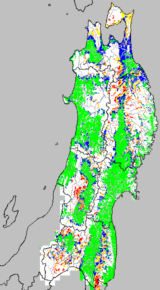 安全作期の策定にある気温指標のうち、中苗・成苗移植の安全早限日の気温指標13.0℃を用いて表示しています。13.0℃以下については1℃刻みで表示し、可能域がどのように推移するかをみるものです。