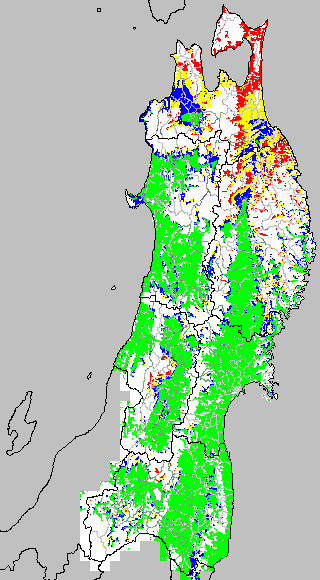 安全作期の策定にある気温指標のうち、中苗・成苗移植の安全早限日の気温指標13.0℃を用いて表示しています。13.0℃以下については1℃刻みで表示し、可能域がどのように推移するかをみるものです。