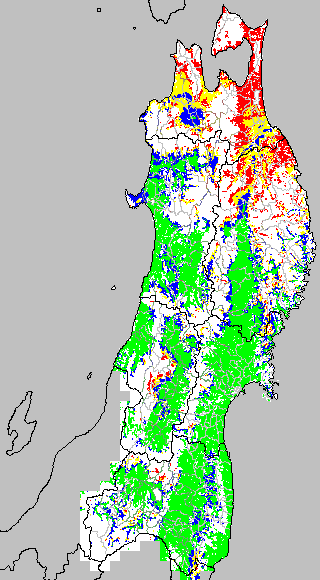 安全作期の策定にある気温指標のうち、乾田直播の安全早限日の気温指標13.5℃を用いて表示しています。13.5℃以下については1℃刻みで表示し、可能域がどのように推移するかをみるものです。