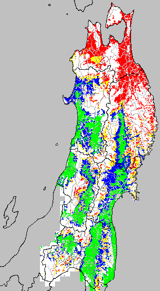 安全作期の策定にある気温指標のうち、乾田直播の安全早限日の気温指標13.5℃を用いて表示しています。13.5℃以下については1℃刻みで表示し、可能域がどのように推移するかをみるものです。