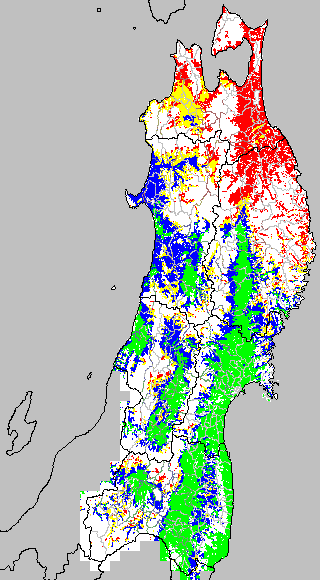 安全作期の策定にある気温指標のうち、湛水直播の安全早限日の気温指標11.5℃を用いて表示しています。11.5℃以下については1℃刻みで表示し、可能域がどのように推移するかをみるものです。