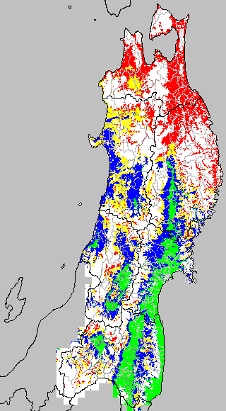 安全作期の策定にある気温指標のうち、稚苗移植の安全早限日の気温指標12.0℃を用いて表示しています。12.0℃以下については1℃刻みで表示し、可能域がどのように推移するかをみるものです。