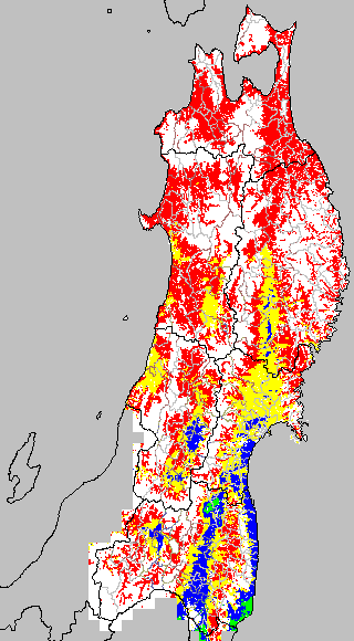 安全作期の策定にある気温指標のうち、乾田直播の安全早限日の気温指標13.5℃を用いて表示しています。13.5℃以下については1℃刻みで表示し、可能域がどのように推移するかをみるものです。