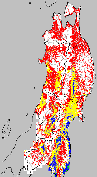 安全作期の策定にある気温指標のうち、中苗・成苗移植の安全早限日の気温指標13.0℃を用いて表示しています。13.0℃以下については1℃刻みで表示し、可能域がどのように推移するかをみるものです。