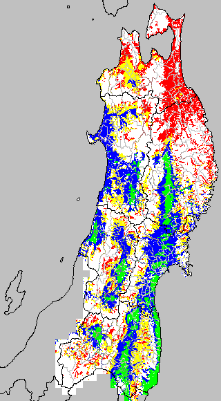 安全作期の策定にある気温指標のうち、湛水直播の安全早限日の気温指標11.5℃を用いて表示しています。11.5℃以下については1℃刻みで表示し、可能域がどのように推移するかをみるものです。