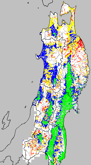 安全作期の策定にある気温指標のうち、稚苗移植の安全早限日の気温指標12.0℃を用いて表示しています。12.0℃以下については1℃刻みで表示し、可能域がどのように推移するかをみるものです。
