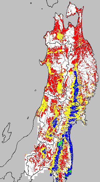 安全作期の策定にある気温指標のうち、乾田直播の安全早限日の気温指標13.5℃を用いて表示しています。13.5℃以下については1℃刻みで表示し、可能域がどのように推移するかをみるものです。