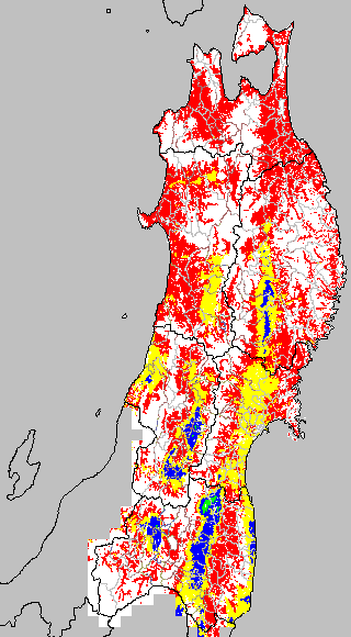 各種文献などを参考にして、分げつ形成に関する限界温度を平均気温で15℃と設定し、15℃以上については1℃刻みで表示します。過去7日の移動平均値で示す。分げつの形成が遅延すると予想される地域を監視するものです。