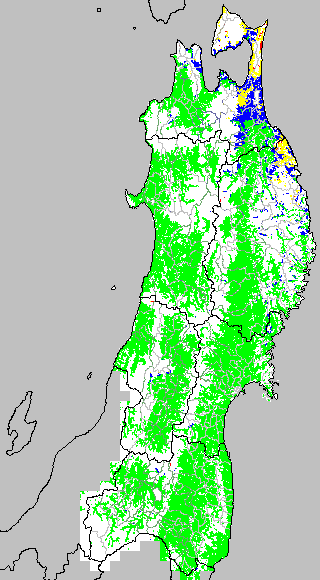 安全作期の策定にある気温指標のうち、乾田直播の安全早限日の気温指標13.5℃を用いて表示しています。13.5℃以下については1℃刻みで表示し、可能域がどのように推移するかをみるものです。