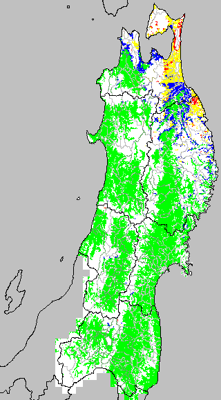 安全作期の策定にある気温指標のうち、中苗・成苗移植の安全早限日の気温指標13.0℃を用いて表示しています。13.0℃以下については1℃刻みで表示し、可能域がどのように推移するかをみるものです。