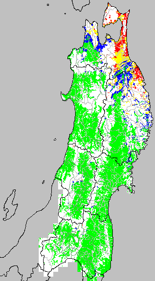 安全作期の策定にある気温指標のうち、乾田直播の安全早限日の気温指標13.5℃を用いて表示しています。13.5℃以下については1℃刻みで表示し、可能域がどのように推移するかをみるものです。