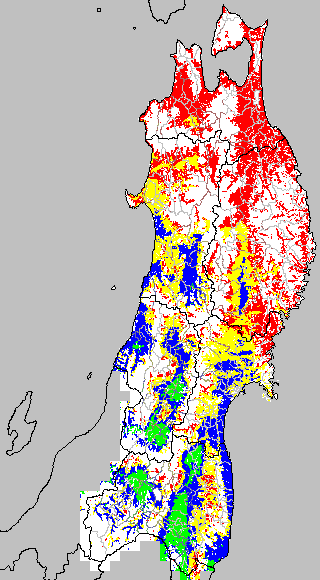 各種文献などを参考にして、草丈・根の伸長に関する限界温度を平均気温で13℃と設定し、13℃以上については1℃刻みで表示します。過去7日の移動平均値で示す。草丈や根の伸長が遅延すると予想される地域を監視するものです。