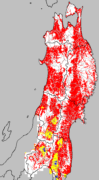 各種文献などを参考にして、分げつ形成に関する限界温度を平均気温で15℃と設定し、15℃以上については1℃刻みで表示します。過去7日の移動平均値で示す。分げつの形成が遅延すると予想される地域を監視するものです。