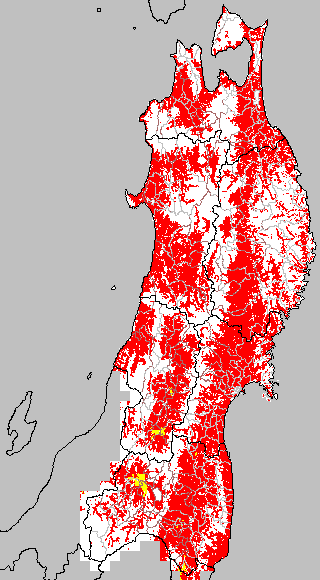 各種文献などを参考にして、分げつ形成に関する限界温度を平均気温で15℃と設定し、15℃以上については1℃刻みで表示します。過去7日の移動平均値で示す。分げつの形成が遅延すると予想される地域を監視するものです。